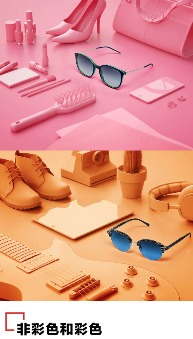 重点配色只使用一个颜色强调突出效果的配色方案,一般使用与整体颜色截然不同的特殊颜色实现这种效果。这就好像老师批改作业时通常都用红笔样,截然不同的颜色可以起到极高的强调作用。