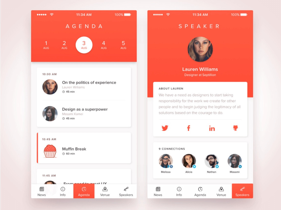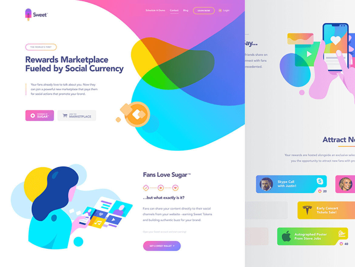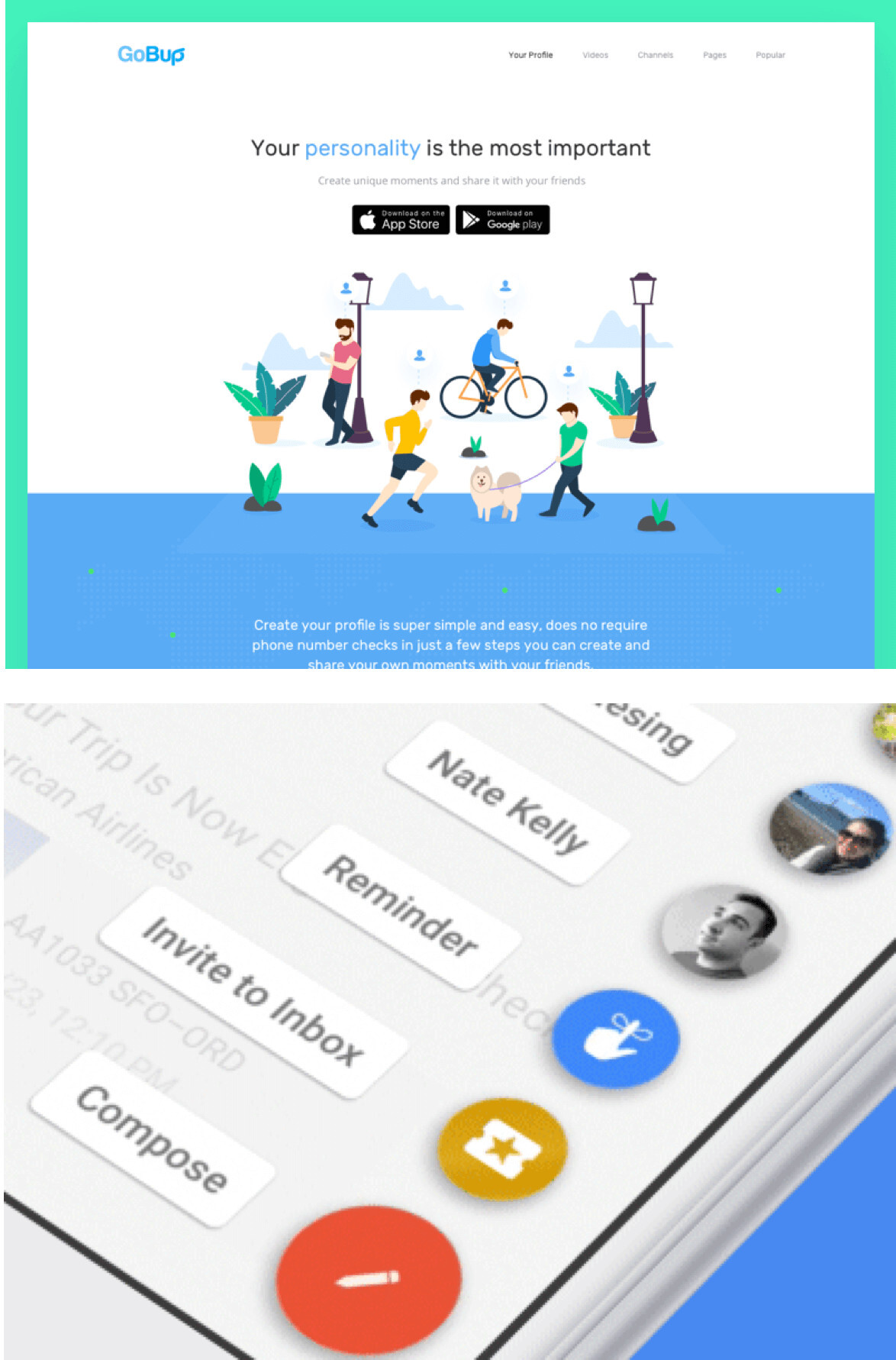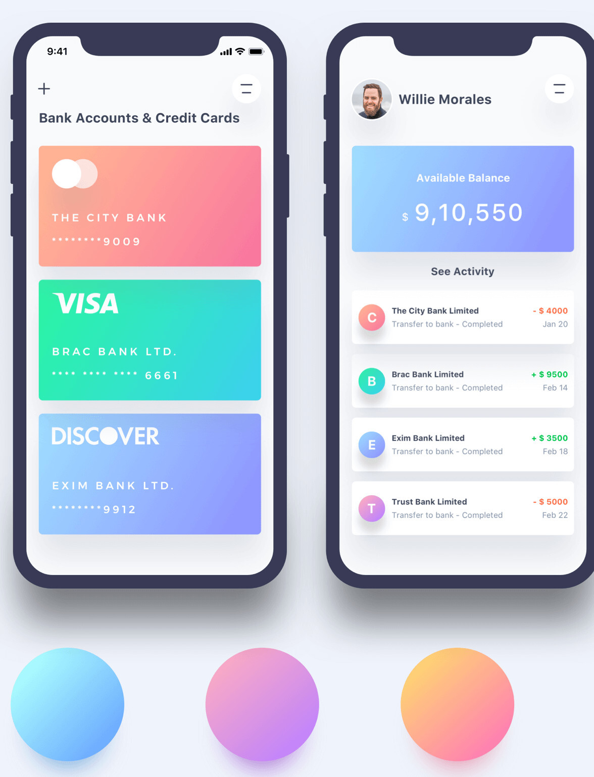 ▲ Ishtiaq Khan Parag 很好的将邻近色用在了图标和卡片上,让整个设计整体年轻活泼了许多。