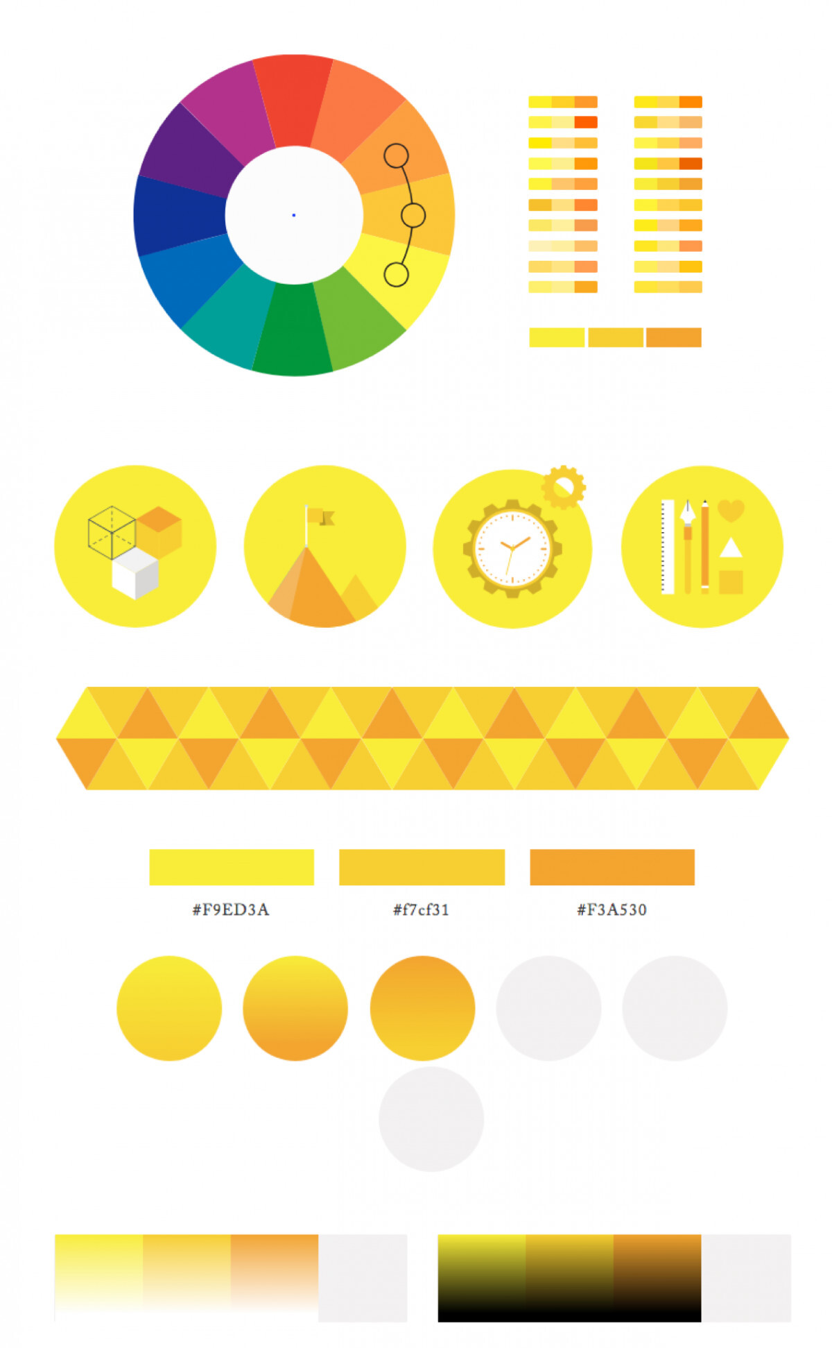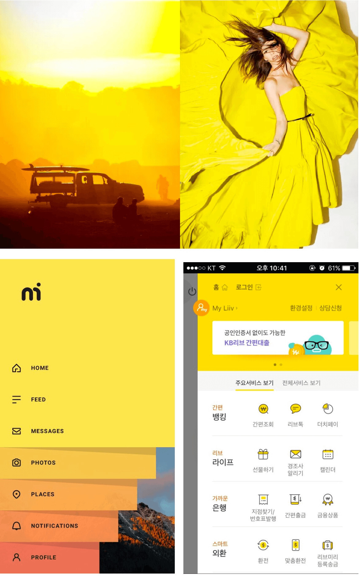 黄色是比较代表幸福的颜色,大家容易联想到阳光,欢乐和温暖,一般黄色用的好有很潮的感觉,但是在设计中也需要注意,黄色也是很容易让用户有负面反应,容易感到焦虑。