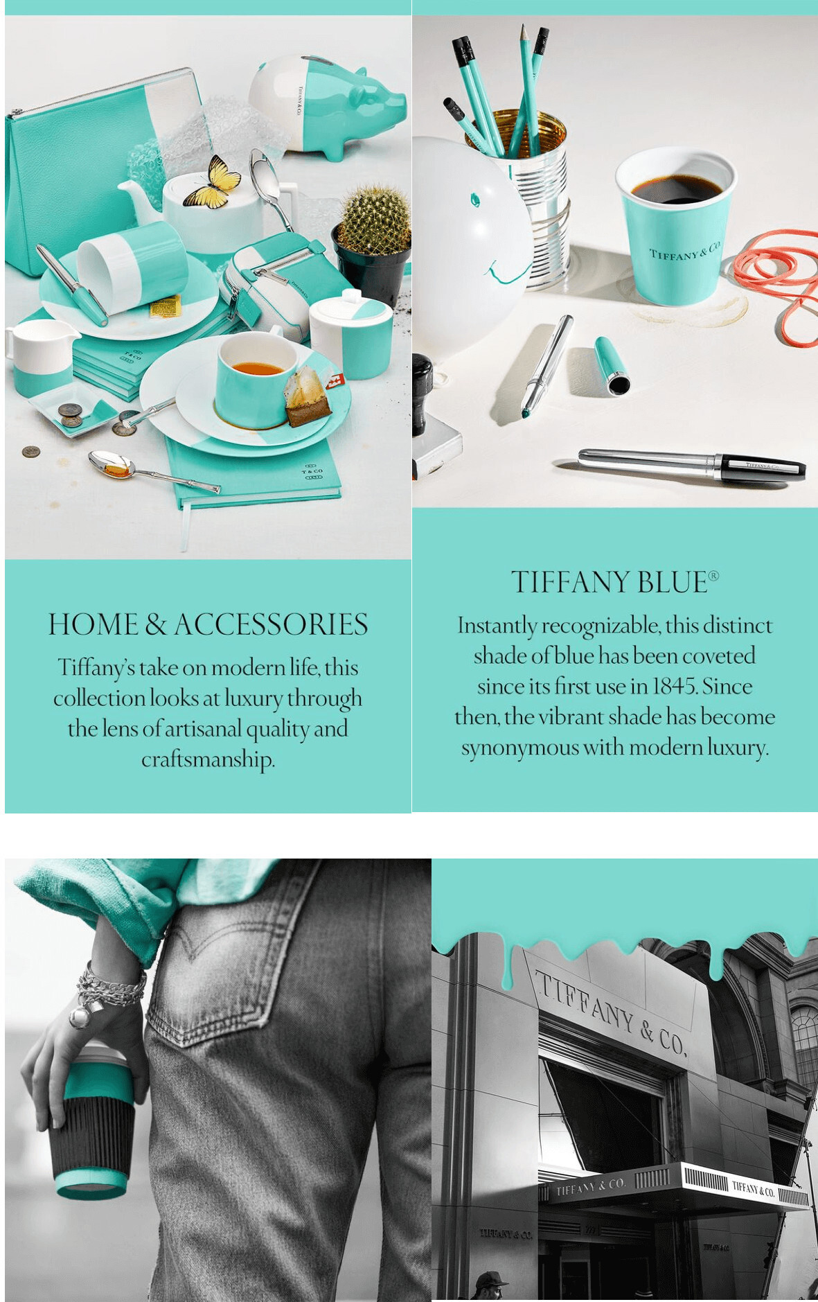 ▲ 蒂芙尼,整个品牌网站,到线下店,以及对外的宣传,周边包装产品统一的使用着蒂芙尼蓝色设计,让这个蓝色深入人心。