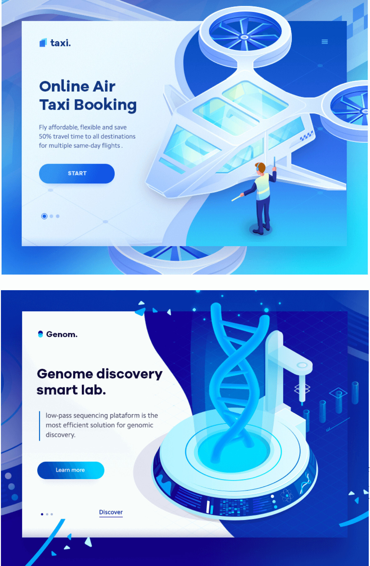 ▲ WalidB的插画作品,同样在插画作品中,运用一个色系,通过深浅对比,来形成统一的风格色调,让风格更加具有高级感,科技感。