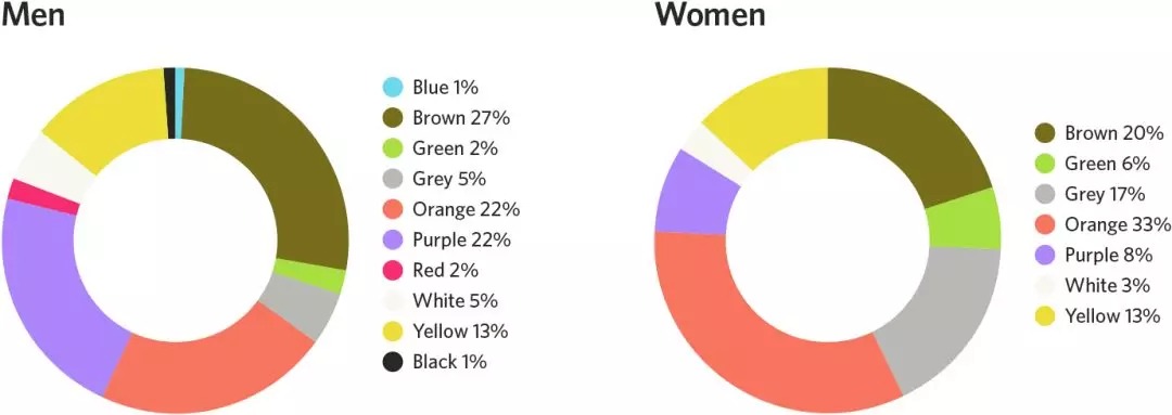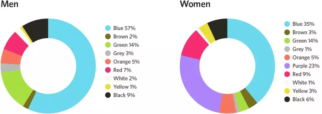 关于颜色偏好的另一点是性别。多年来已经进行了许多颜色研究,其中很多人都说女性和男性的颜色偏好显着不同。Color Assignment小组对此主题进行了深入研究,许多设计师已经在创作过程中使用了结果。我们已经从研究中定义了最值得注意的东西,与您分享。