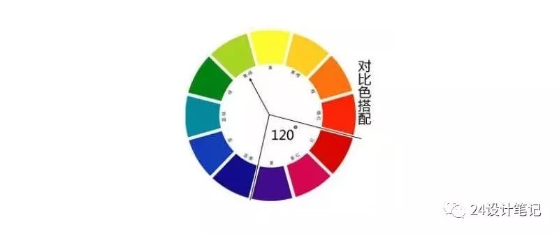 对比色指的是本颜色对应色环120°位置的颜色,所以对比色可以有两组,左边一个右边一个;