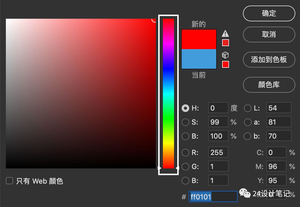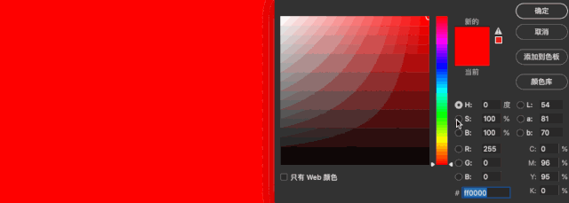 如图PS默认取色窗口,即拖动白框区域改变色相(这个也要记,讲话显得专业)。